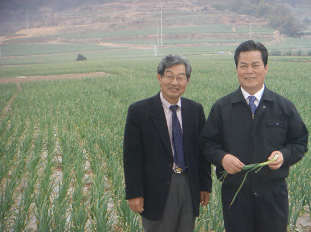 KAIST 정안식 박사와 필자 고흥 마늘 밭에서